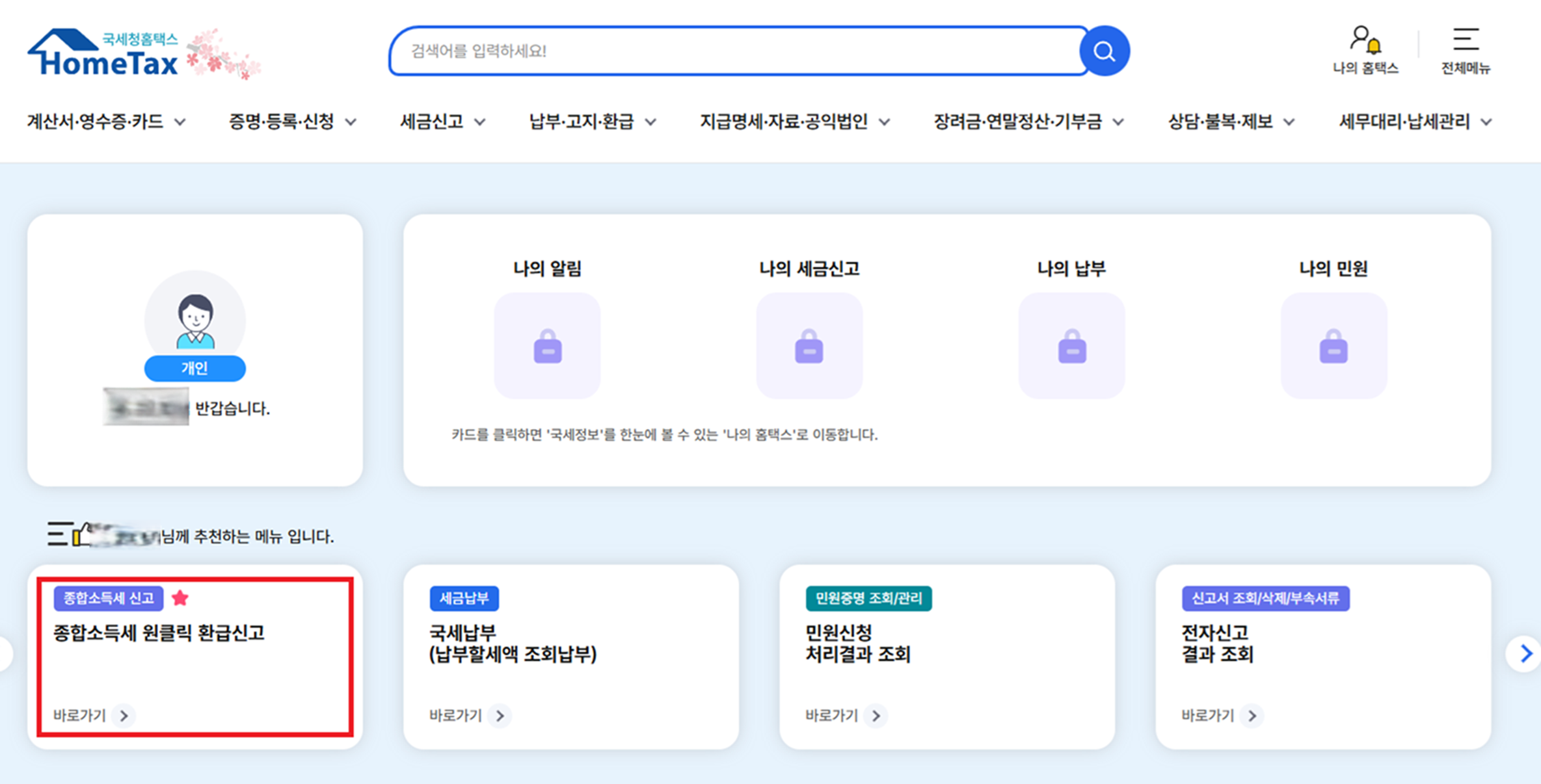 “혹시 나도 종합소득세 환급 대상일까?” 궁금하시다면, 홈택스의 ‘원클릭 서비스’를 이용해보세요!